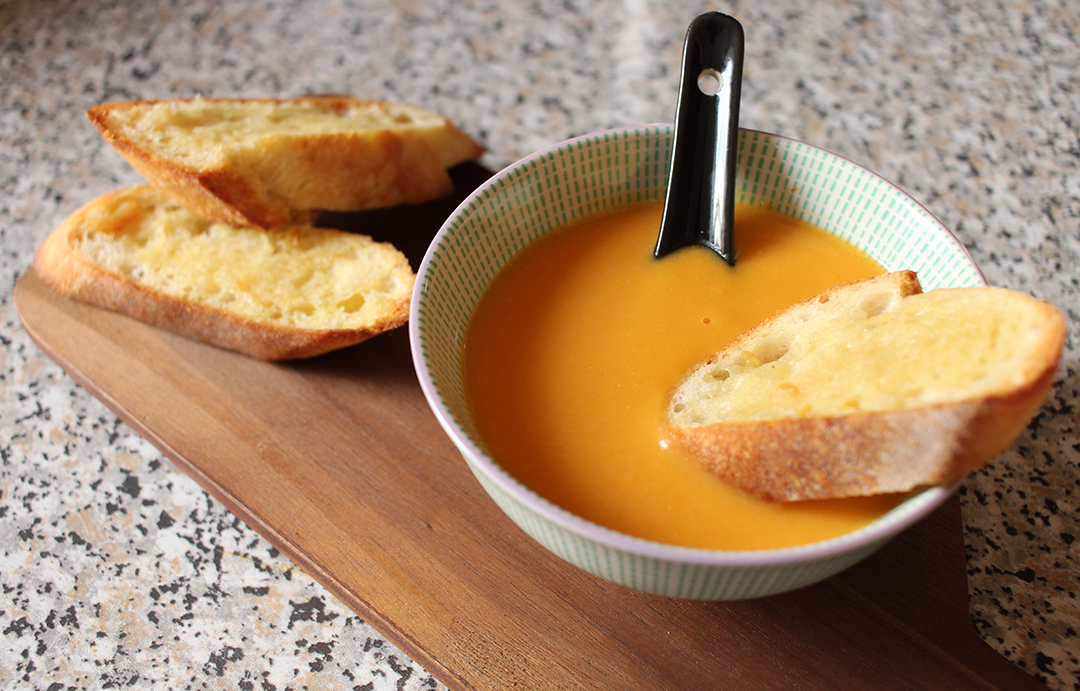 Sweet Potato Soup and Roasted Garlic Crostini