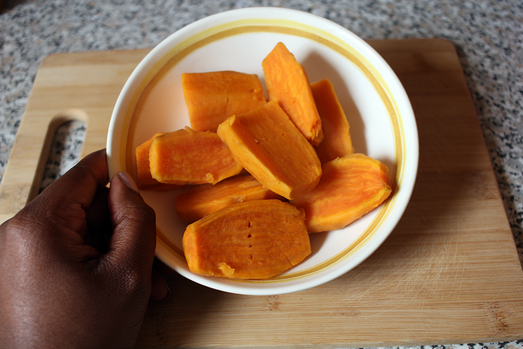 - In a pot of boiling water, cook the peeled and quartered sweet potatoes. Cook for about 15-20 minutes, until tender.